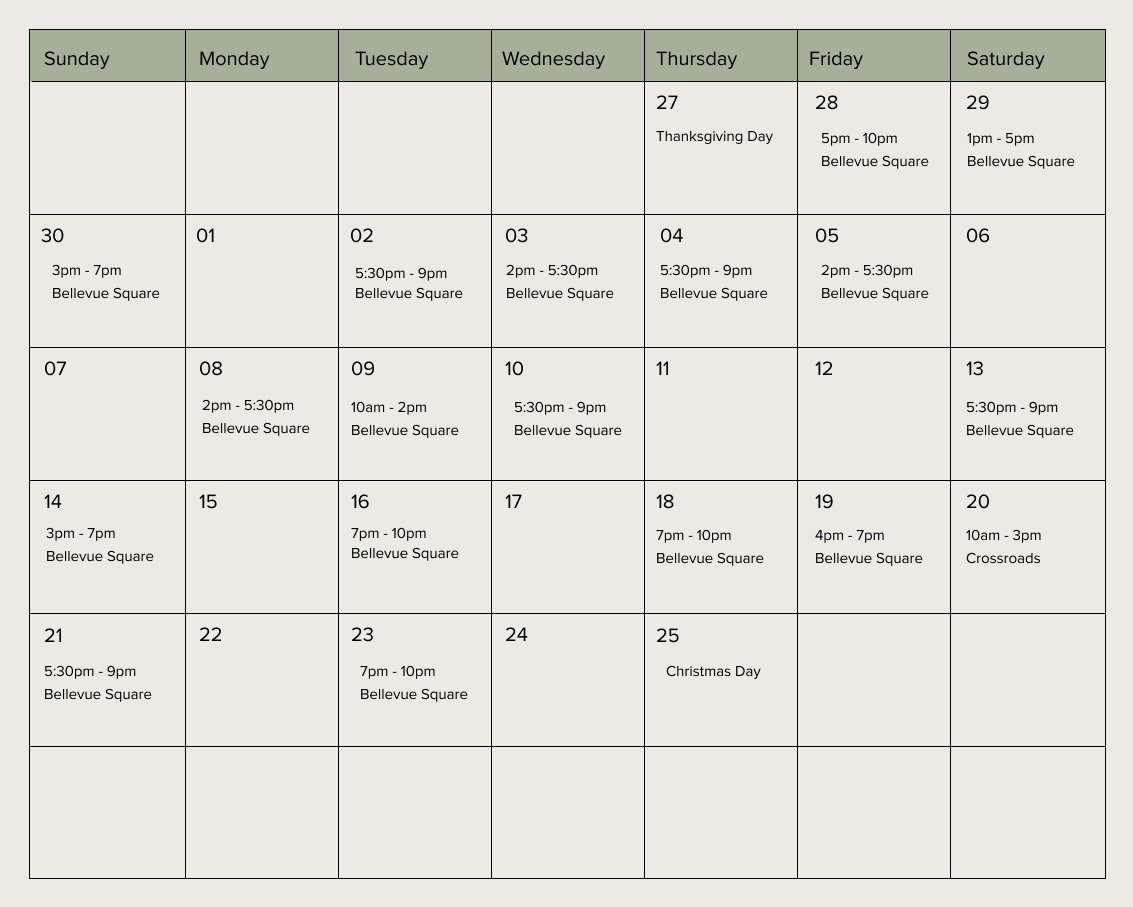 Santa Paul D. Schedule subject to change. Santa Paul’s Locations Bellevue Square Crossroads Want to See More Santas? See All Santas